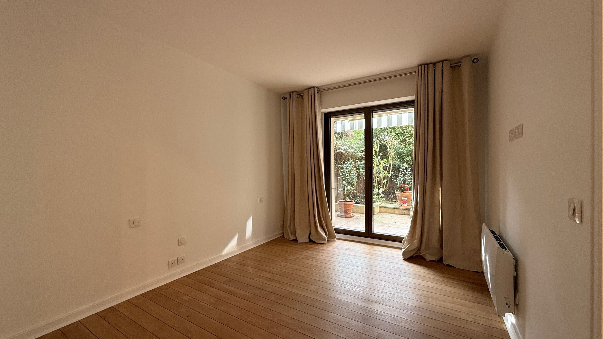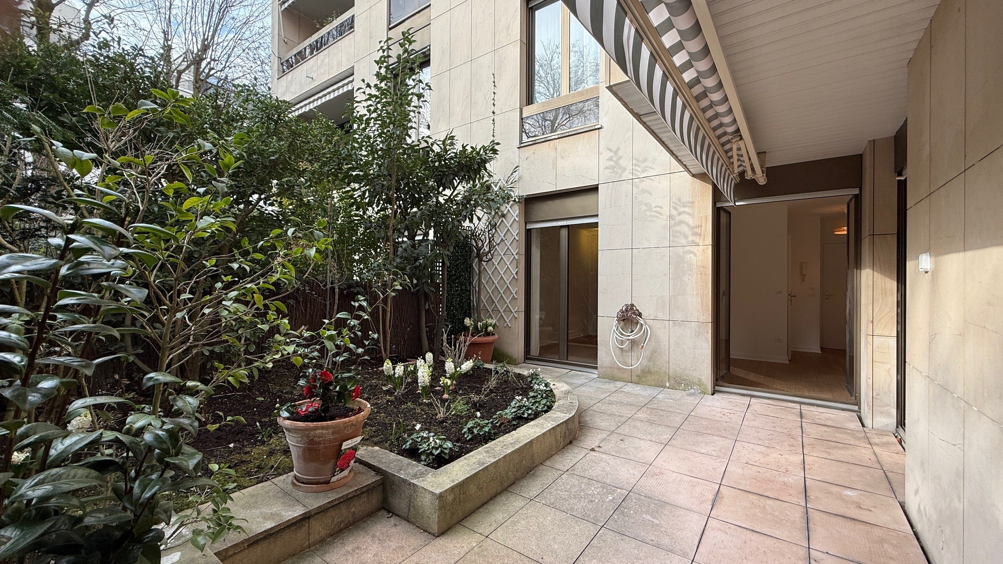 L'appartement donne sur un ravissant jardin privatif d'environ 24m2 orienté au Sud et à l'Est.