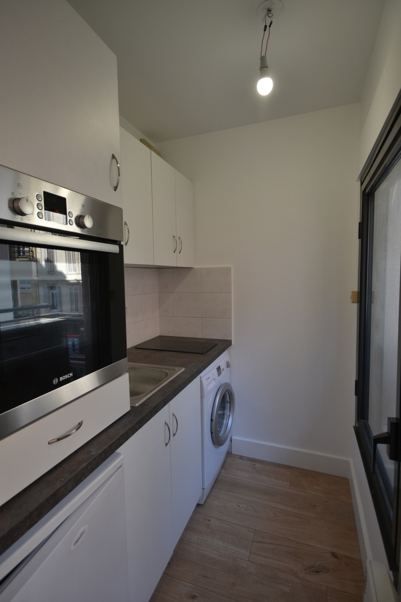 IL SE COMPOSE D UNE ENTREE AVEC PLACARD, SEJOUR AVEC RANGEMENTS, SALLE DE DOUCHE AVEC WC ET D UN COIN CUISINE AMENAGE ET EQUIPE.