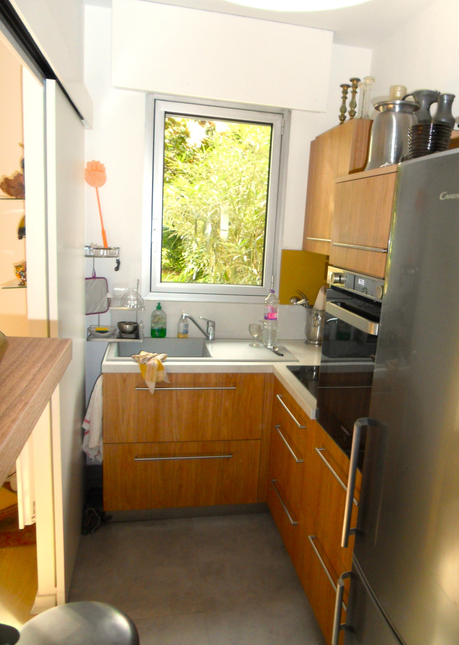 Kitchenette avec électro-ménager, une porte coulissante directe pour accès Salon / Séjour.