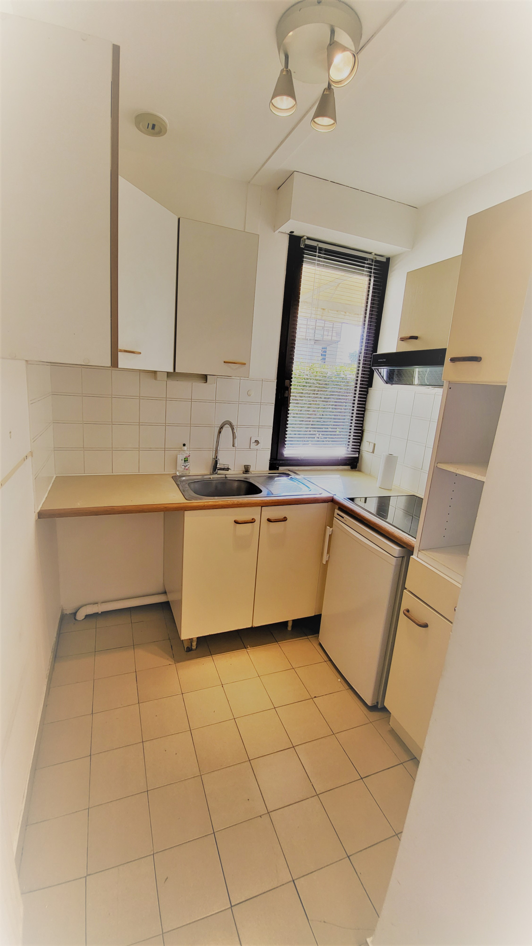 - Cuisine aménagée avec fenêtre donnant sur extérieur.