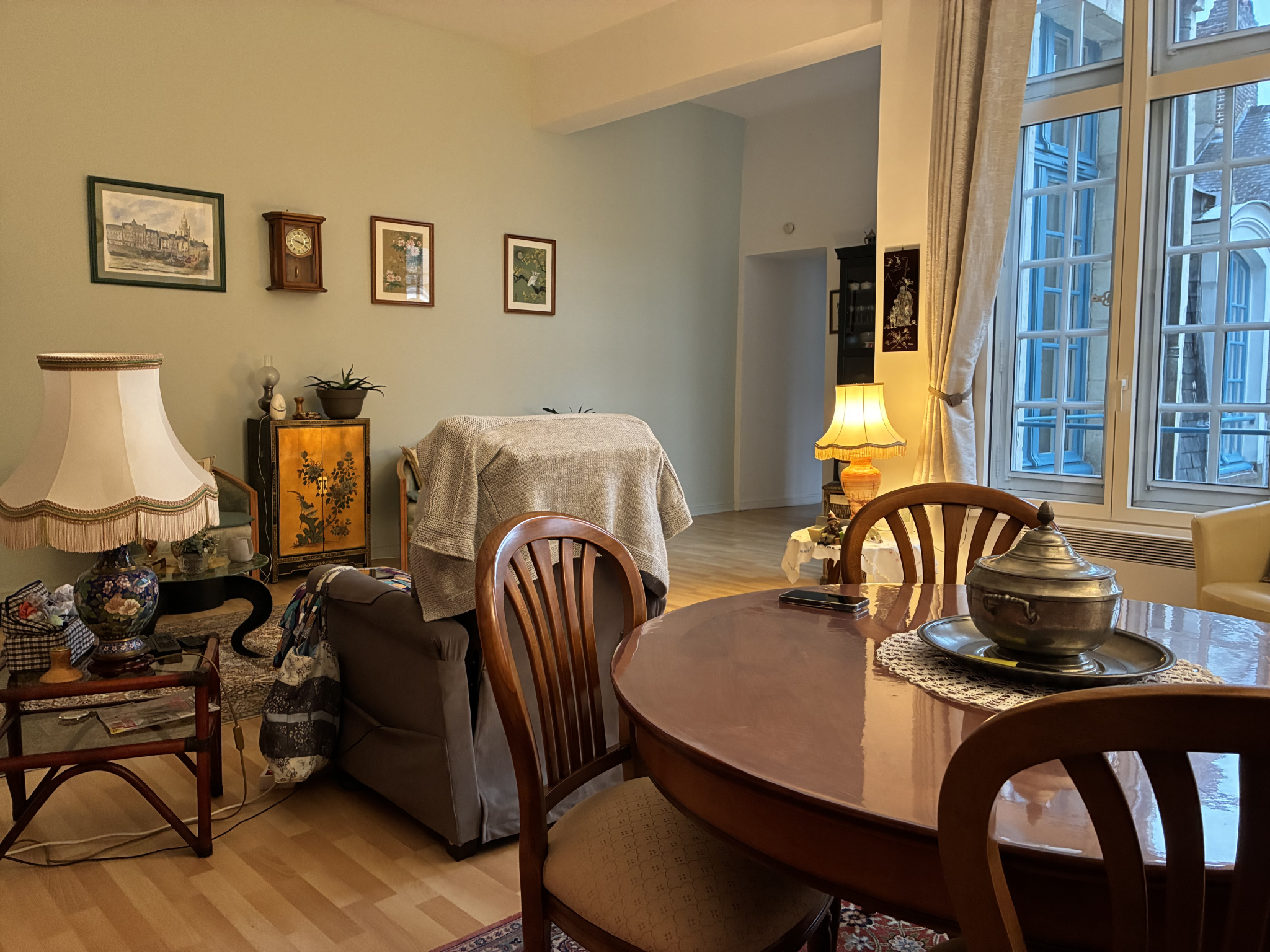 En plein coeur du Vieux-Lille, situé dans la très élégante résidence des Hespérides de la rue Royale, un appartement de 94 m² renové et entretenu comprenant une entrée privative avec wc, un vaste séjour lumineux en L avec belle hauteur sous plafond, une cuisine aménagee équipée, une chambre/bureau, dégagement pour salles de d'eau, des toilettes séparées, un grande chambre. box et cave