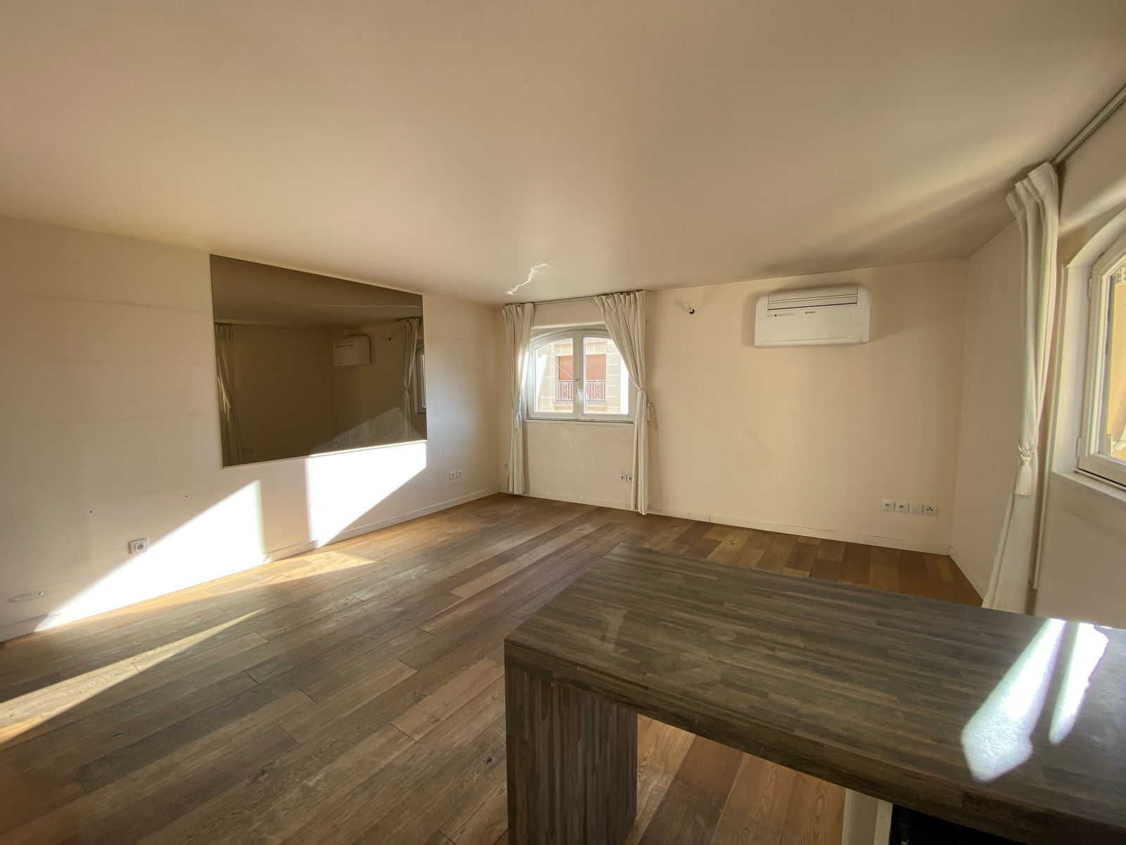 Il se compose d'un séjour (climatisé) lumineux avec cuisine ouverte équipée comprenant lave vaisselle, frigo,hotte et lave linge, d' une chambre avec placards (dressing), d'une salle d'eau avec douche et chauffe serviette et d'un wc séparé.